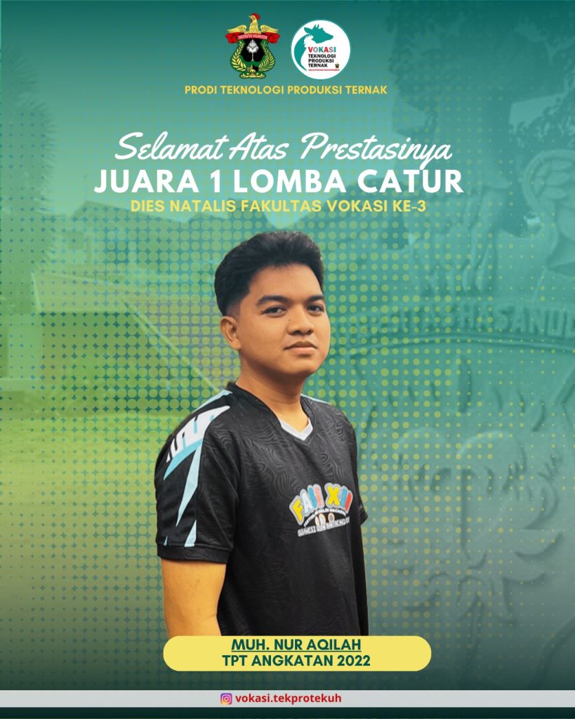 Program Studi Teknologi Produksi Ternak merupakan salah satu Program Studi yang ada di Fakultas Vokasi UNHAS yang berada di Makassar dan Teaching Farm di Kabupaten Sidendeng Rappang (SIDRAP). Sistem Pembelajaran menggunakan multy entry-multy exit yakni perwujudan konsep Pendidikan terbuka, yang mengharuskan mahasiswa memiliki keahlian untuk siap terjun ke dunia kerja dan dunia usaha.